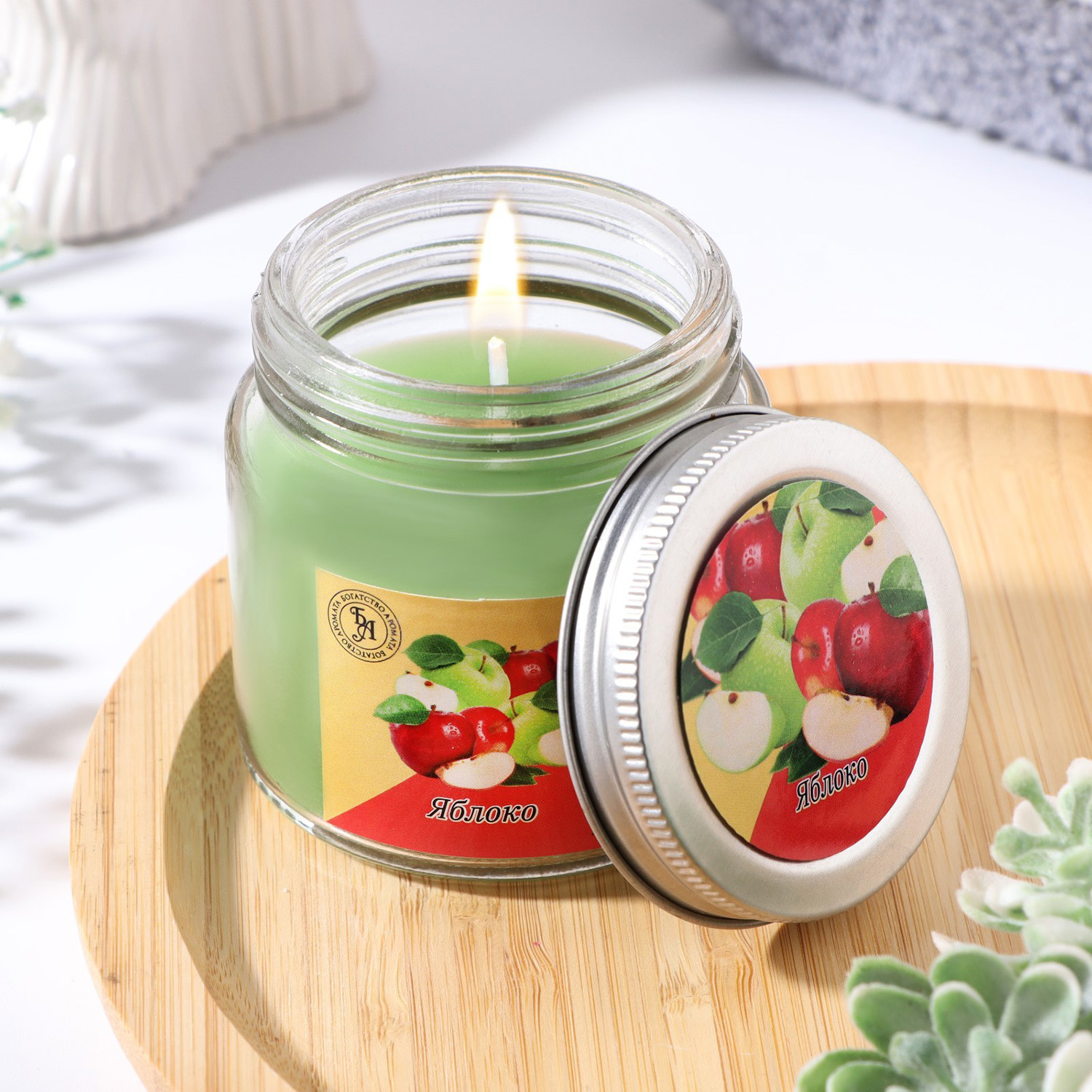 Ароматическая свеча в банке, 6.3 см, 100 мл, яблоко