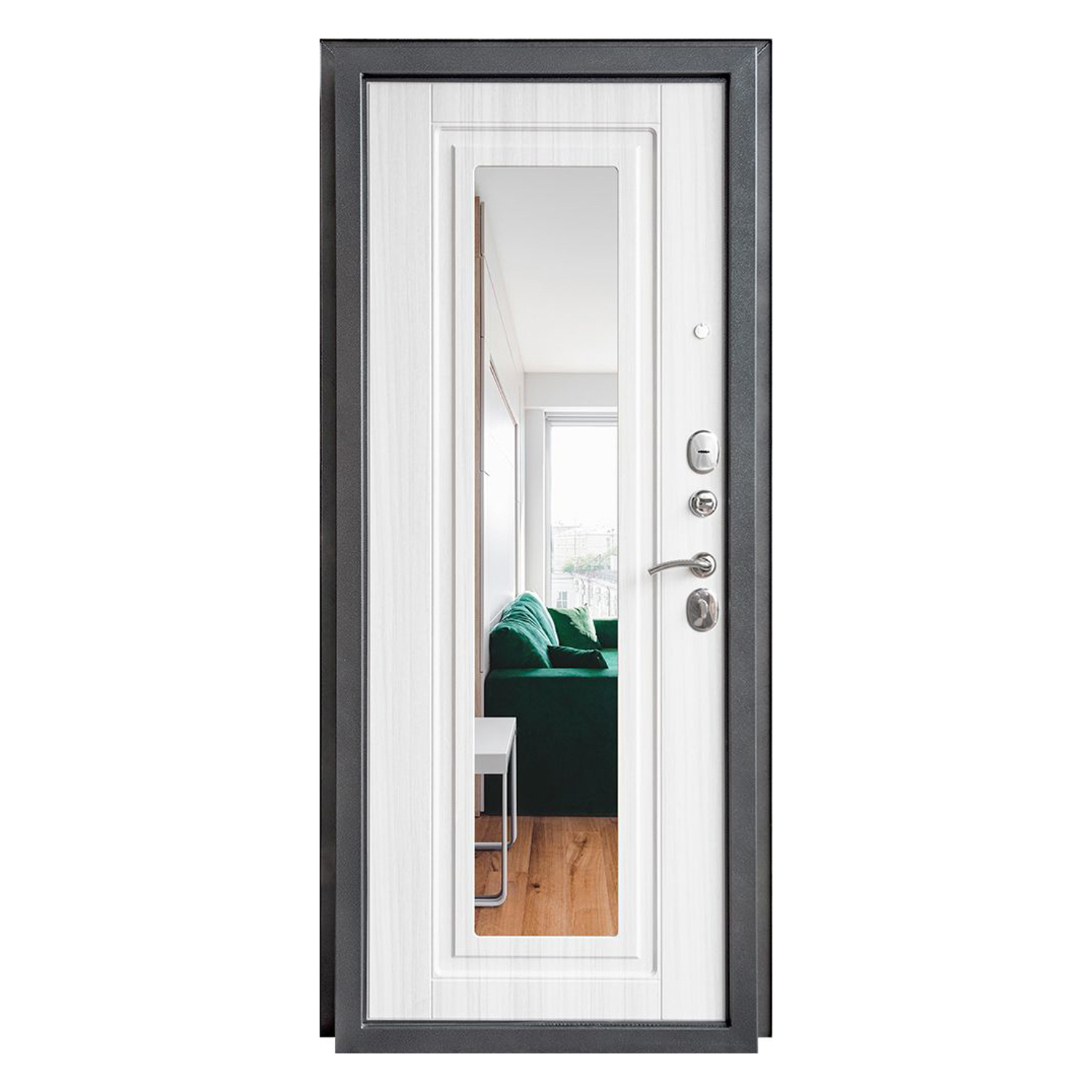 Дверное полотно, замок основной, замок дополнительный, зеркало, комплект фурнитуры, петли - 3 шт., п |