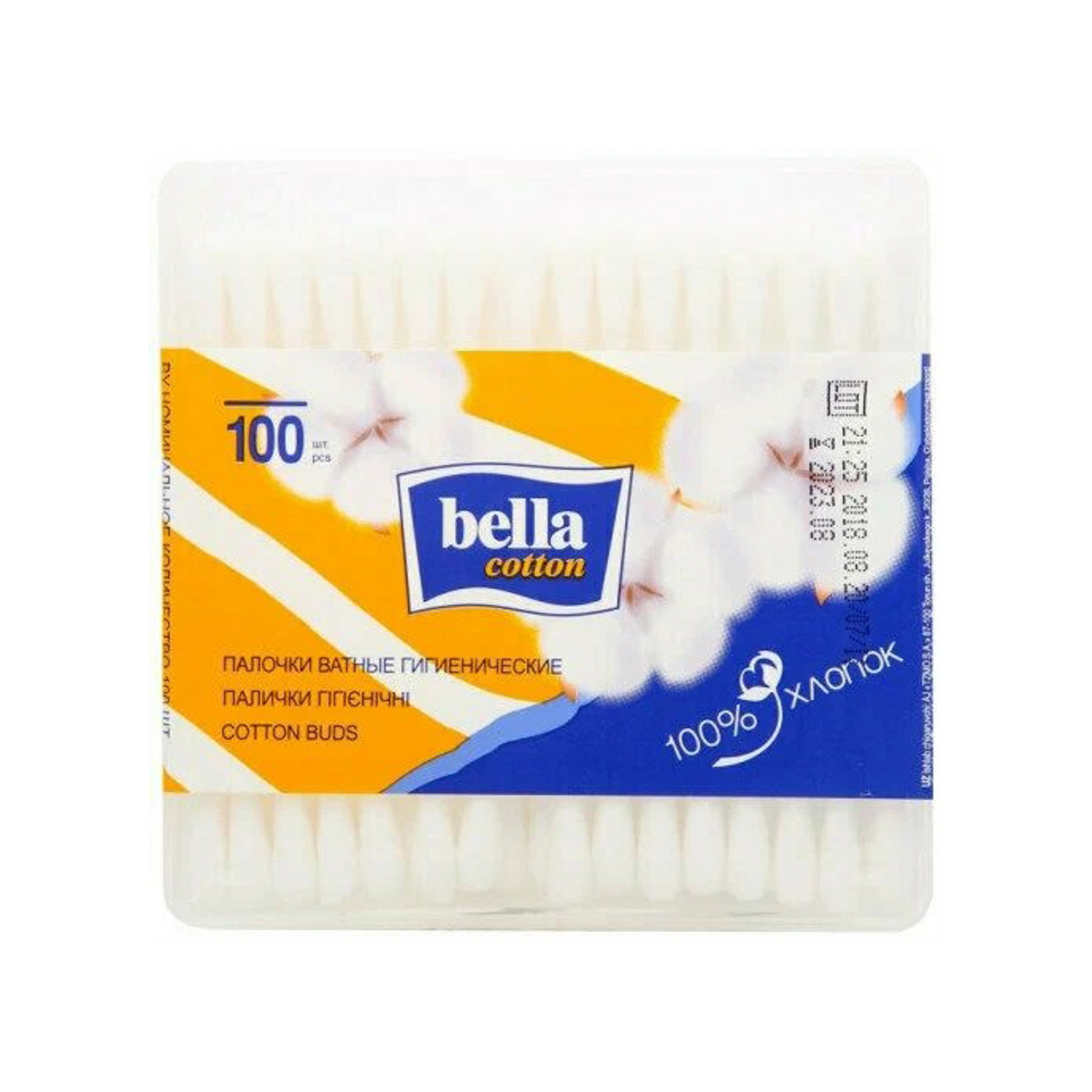 Ватные палочки Белла 100 шт. квадрат *1