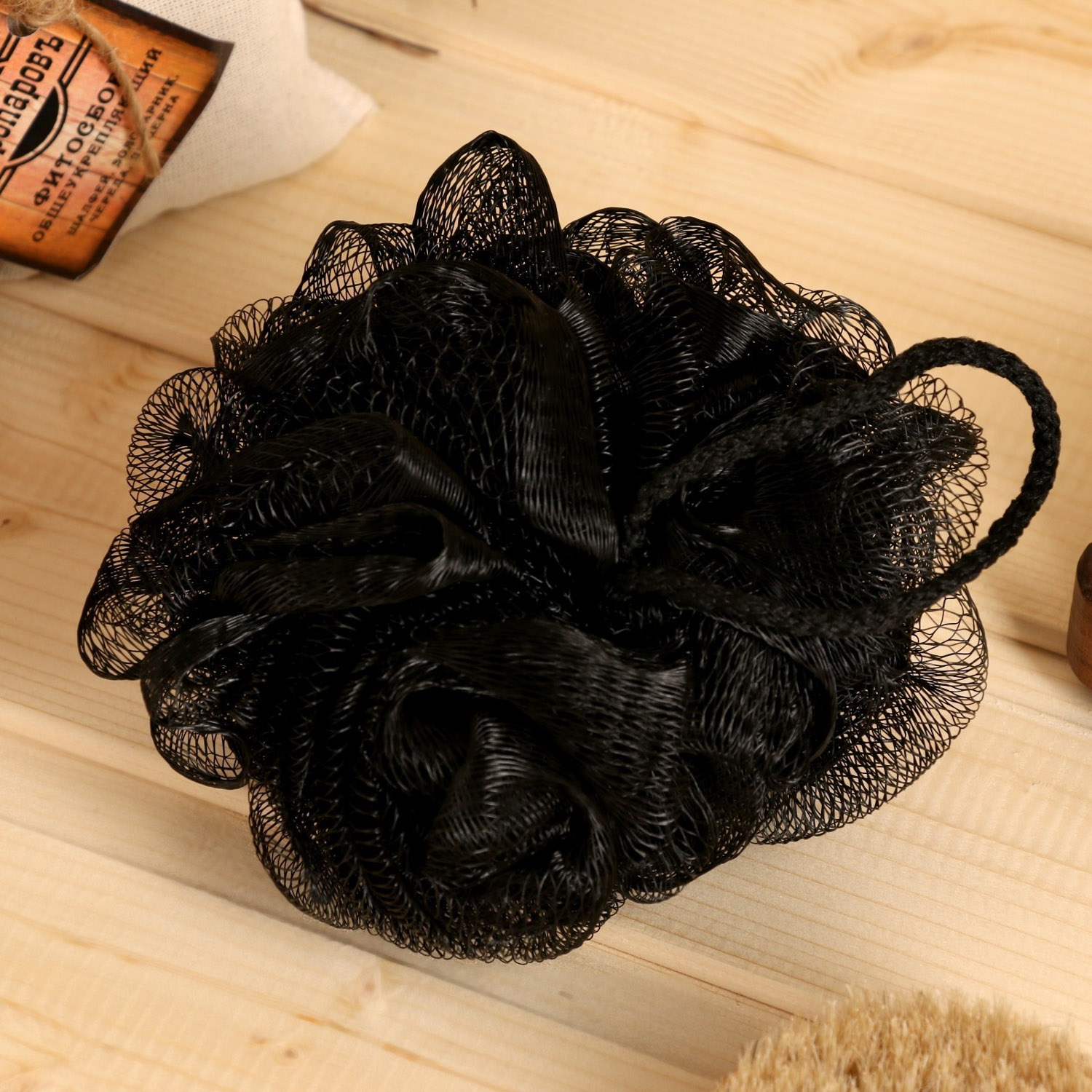 Мочалка банная "Шар" 50гр цвет черный