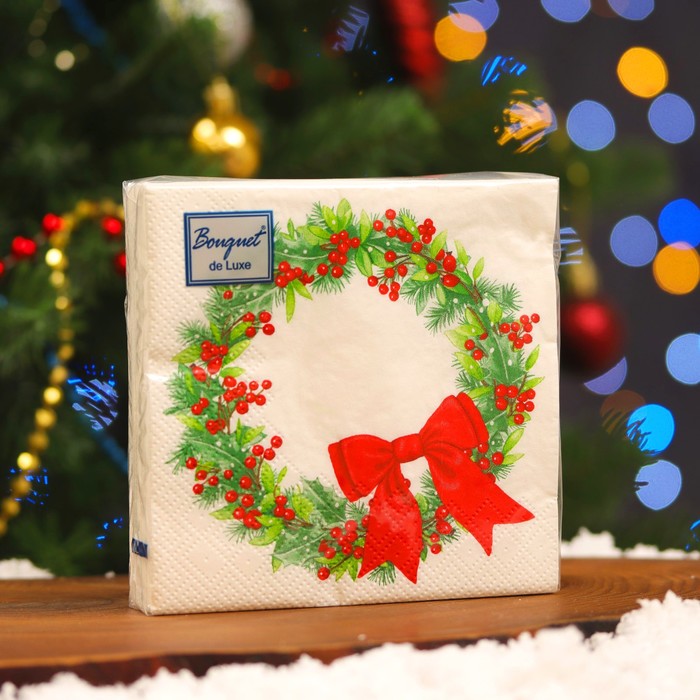 Салфетки бумажные 25шт НОВЫЙ ГОД 24*24см Bouquet de Luxe Венок с бантиком 3сл *15