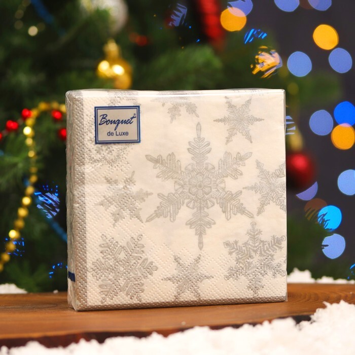 Салфетки бумажные 25шт НОВЫЙ ГОД 24*24см Bouquet de Luxe Снегопад Серебро 3сл *15