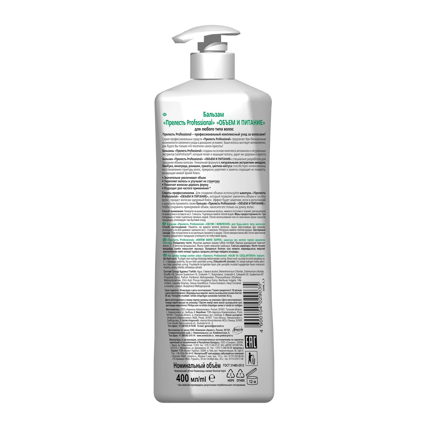 Бальзам для волос Прелесть Profess Объём и питание 400 мл