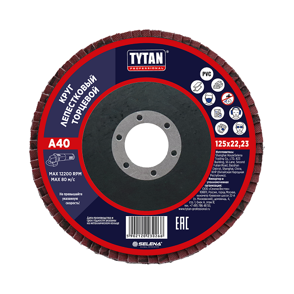 Круг шлифовальный лепестковый торцевой 125*22,23мм A 40 оксид алюминия TYTAN *10/200