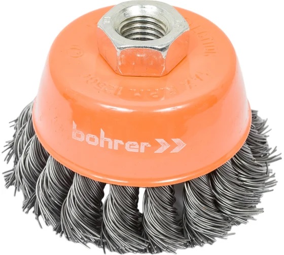 Щетка-крацовка "чаша" витая,жесткая проволока 75мм 0,5мм М14мм для УШМ арт.36200075 Bohrer *1/100