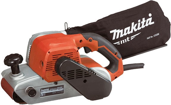 Ленточная шлифмашина MAKITA M9400, оснащенная мощным двигателем 940 Вт для быстрого снятия материала. Плоская верхняя часть позволяет повернуть шлифмашину и использовать ее как настольный инструмент. Применяются ленты 100x610 мм.