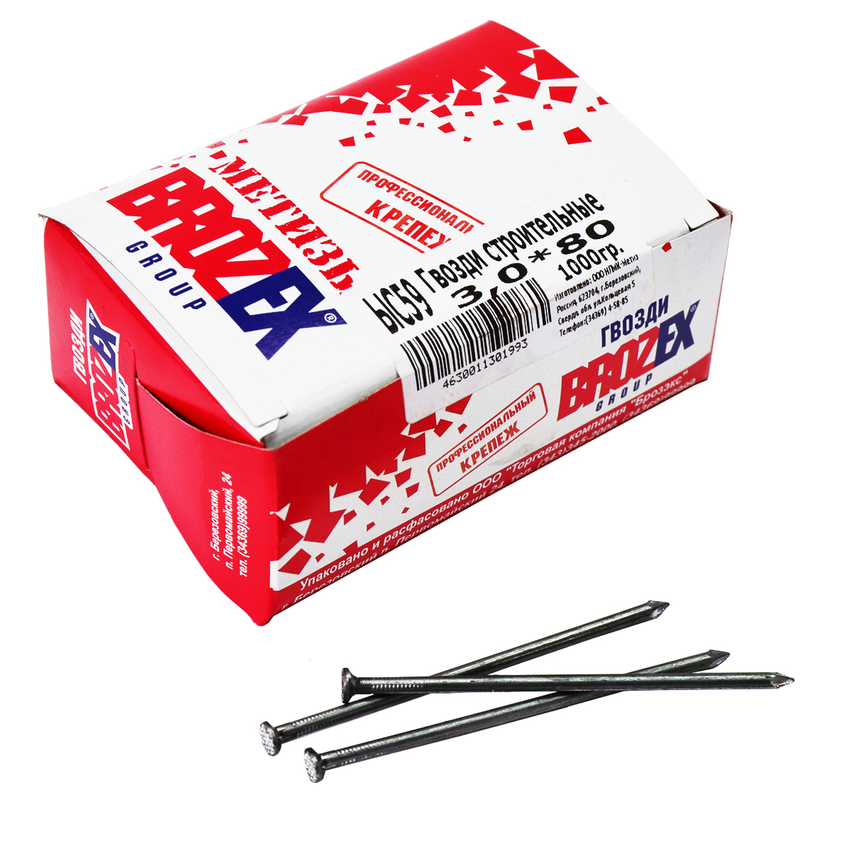 Гвозди строительные 3х80 мм BROZEX, 1 кг