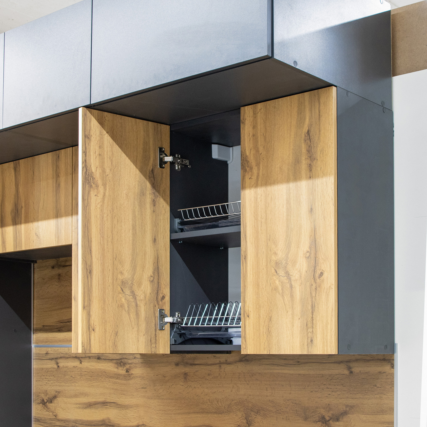 Шкаф навесной 600х676х290 мм BROZEX-WOOD Next, с двумя дверцами, графит / дуб вотан