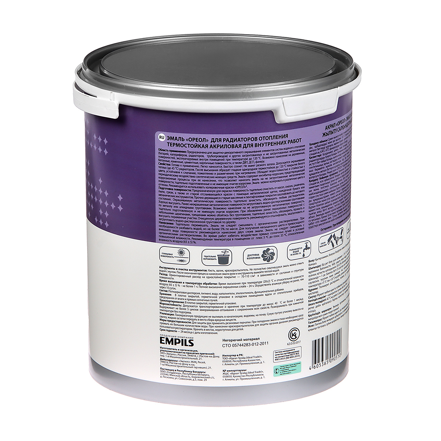 - Содержит ингибитор коррозии, что позволяет наносить эмаль на незагрунтованные металлические поверхности при условии отсутствия ржавчины.