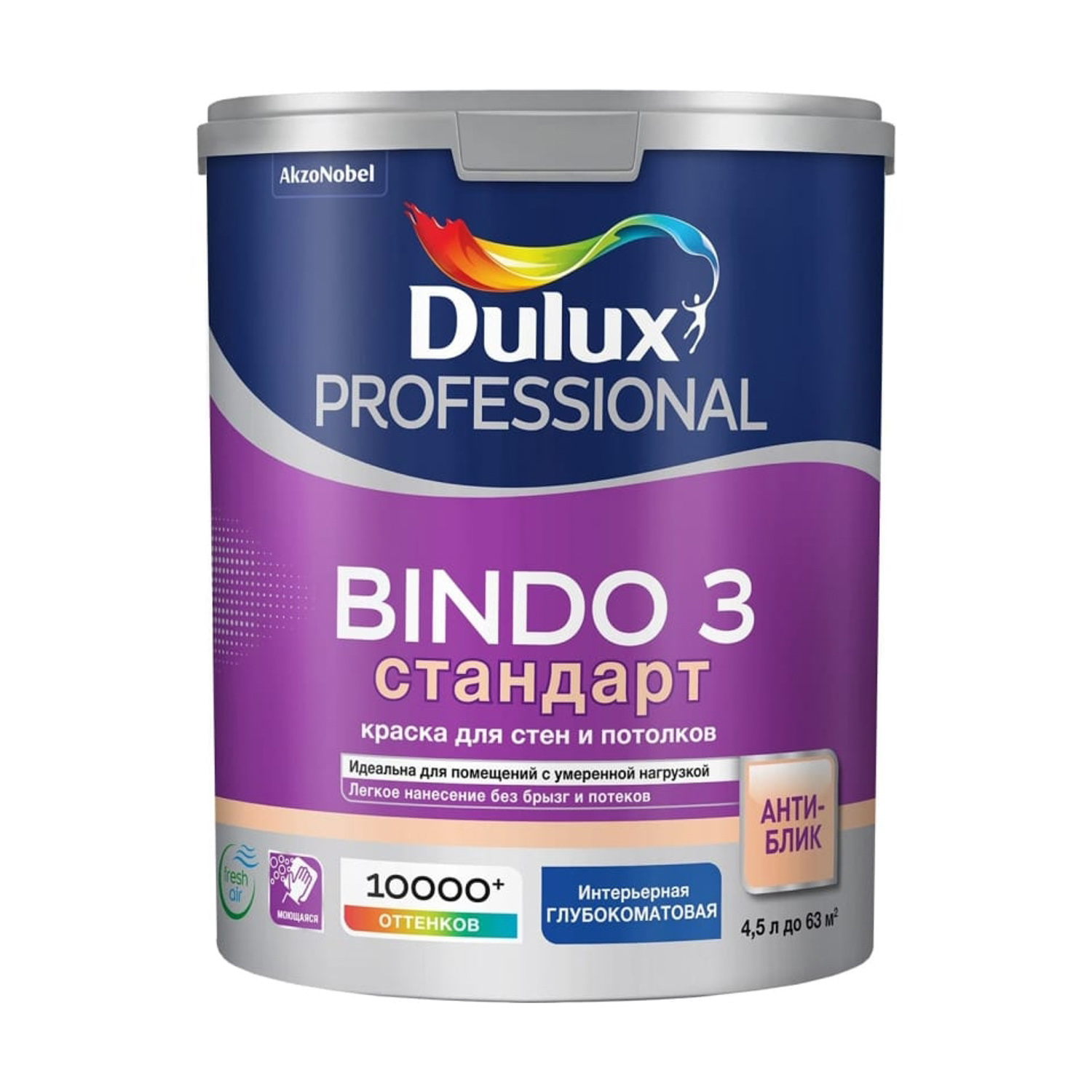 Краска акриловая для стен и потолков 4,5 л BINDO 3 База BC моющаяся глубокоматовая *1