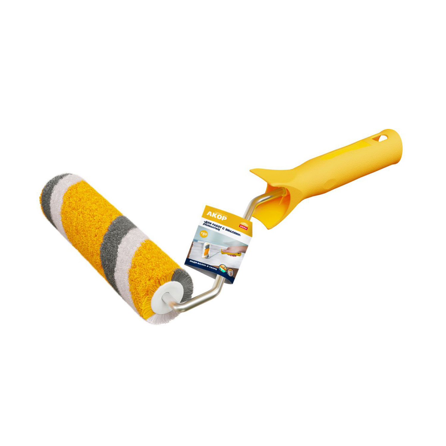 Валик-миди 120мм в сборе д/работ с эмалями,d-25мм,ворс12мм,ручка30см,тигр (Акор) *1/45