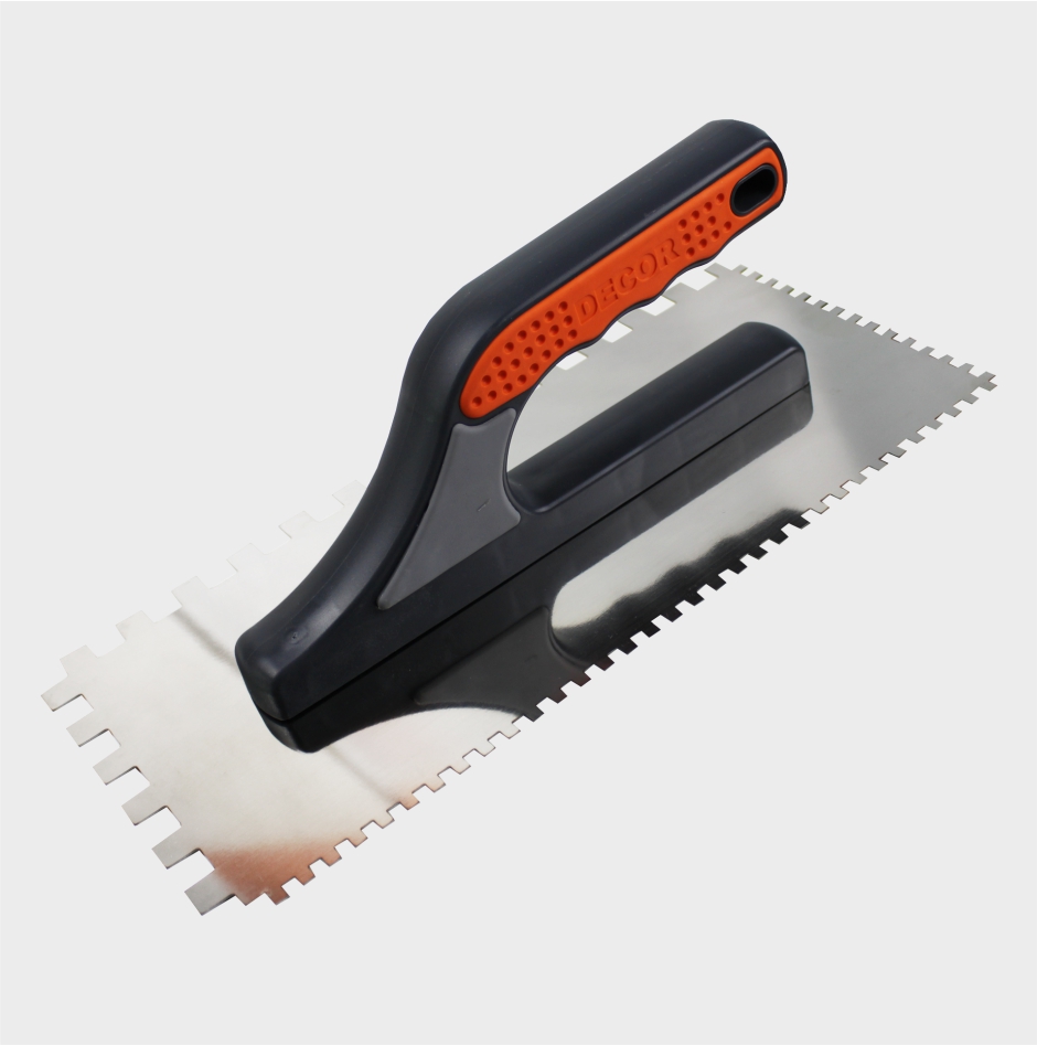 Кельма штукатура стальная DECOR, 280х130 мм, зуб 6х6+12х12 мм