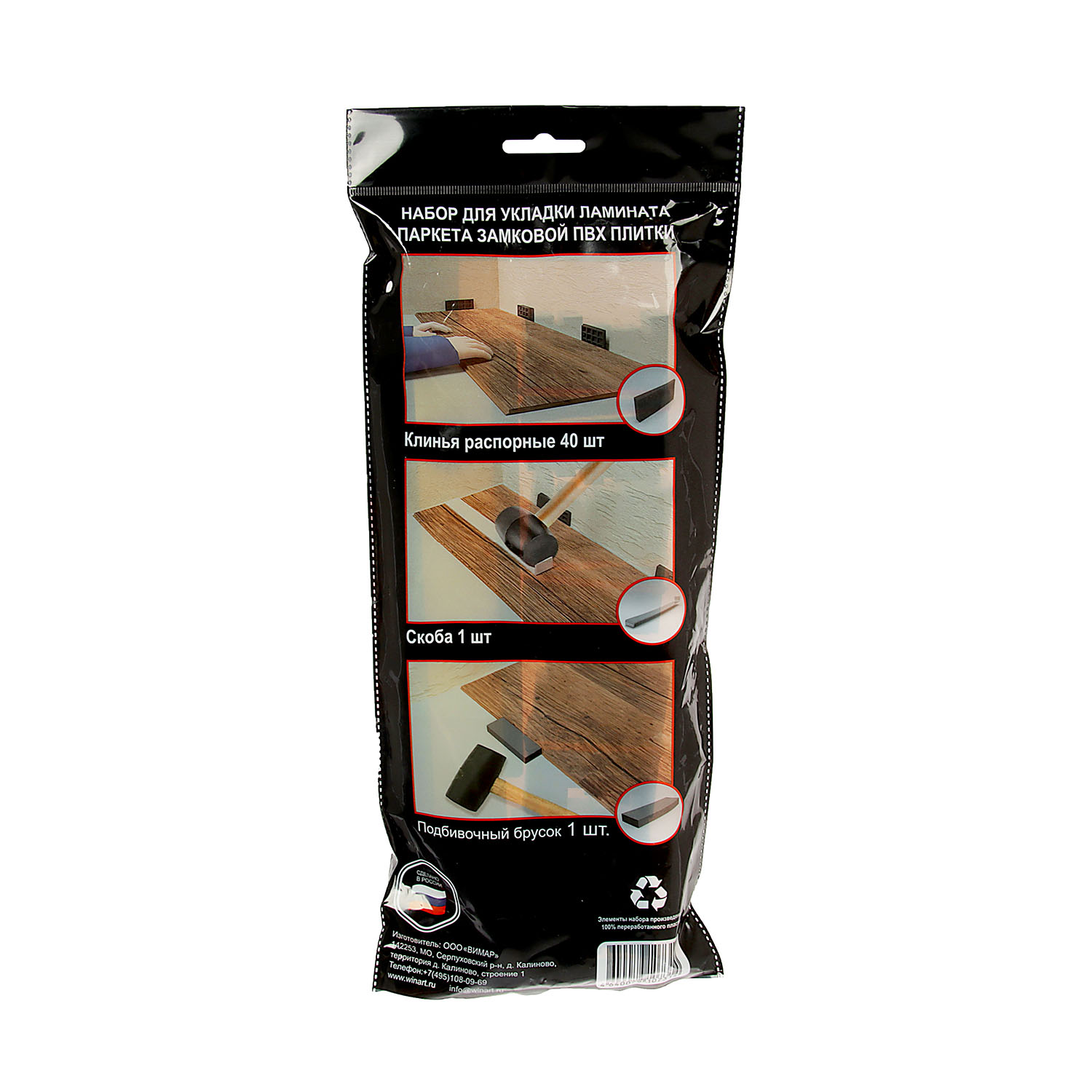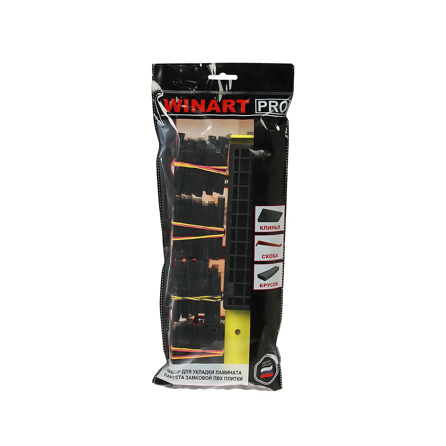 Набор для укладки ламината и паркетной доски Winart - комплект из специальных скоб, подбивочного бруска и распорных клиньев. Его использование упрощает и ускоряет процесс устройства напольного покрытия, повышая качество укладки.