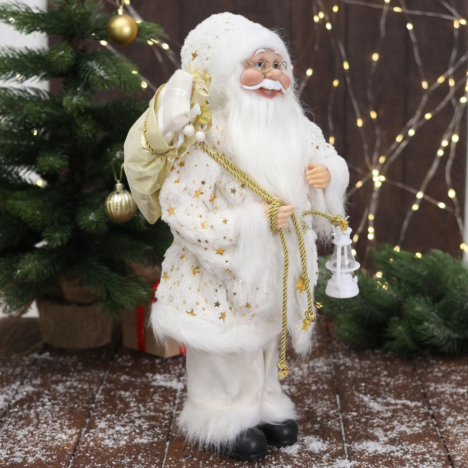 Дед Мороз "В белой звёздной шубке, с фонарём" 45 см 4316760