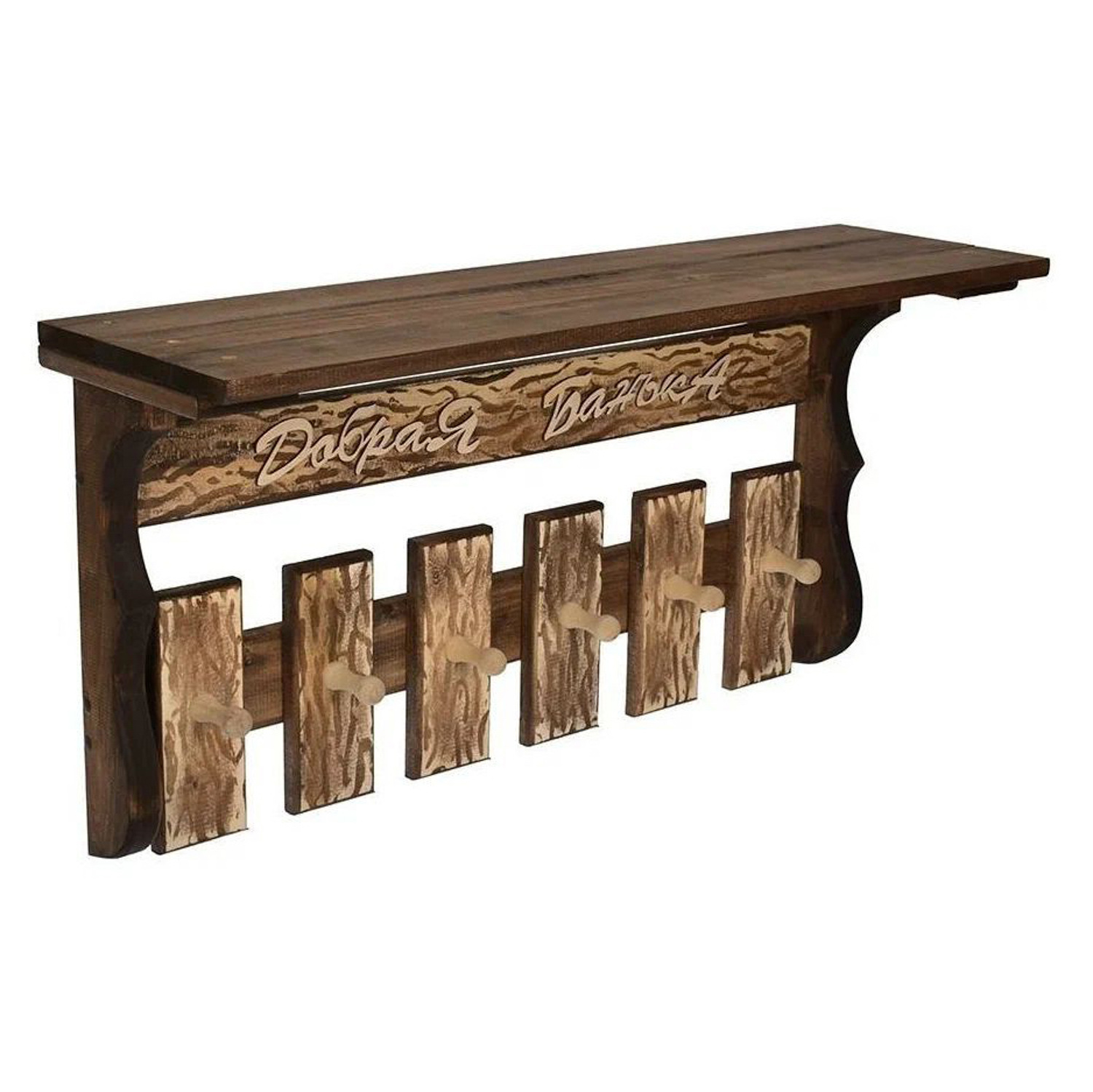 Полка с вешалкой, состаренная, "Добрая банька", 6 рожков 77*35*21 см, липа "Банные штучки"/2