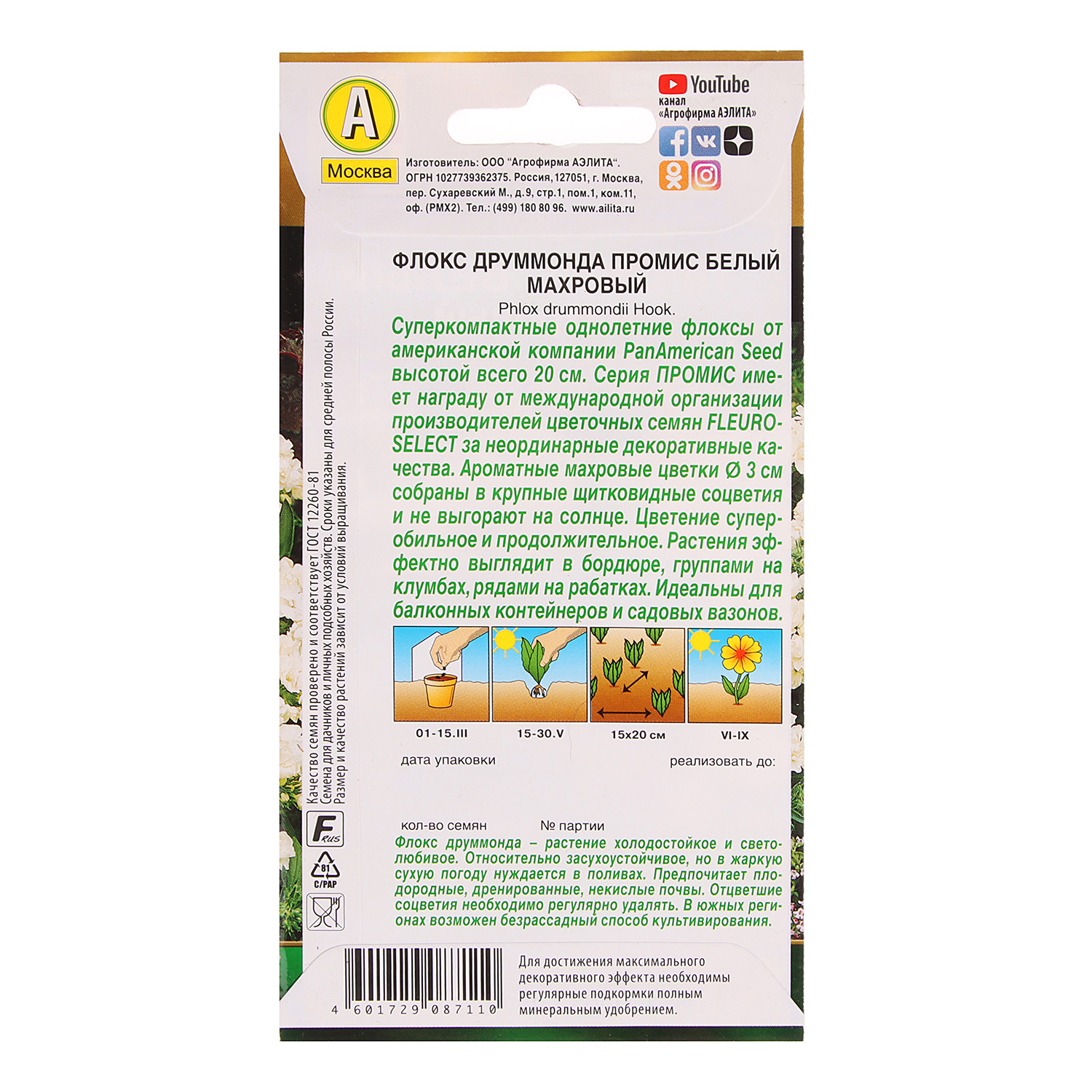 Флокс махр. Промис белый 10шт 10 Аэлита цв.