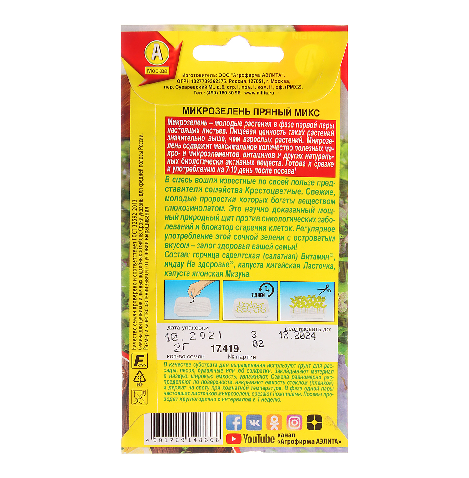 Микрозелень Пряный микс  2гр Аэлита *10