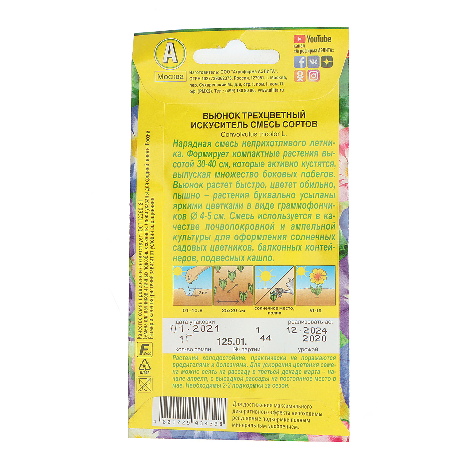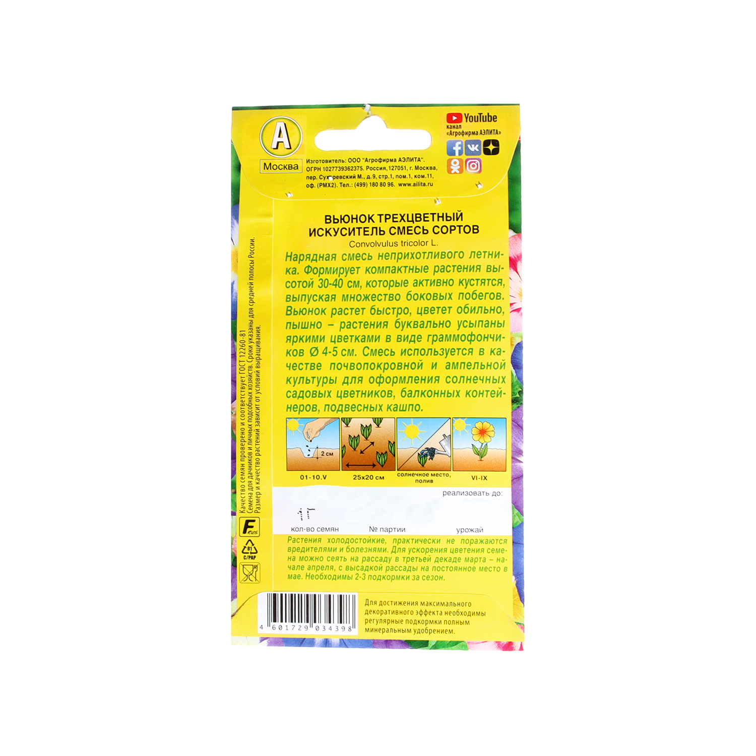 Семена Вьюнок трехцветный смесь Искуситель 1гр Аэлита цв *10/200