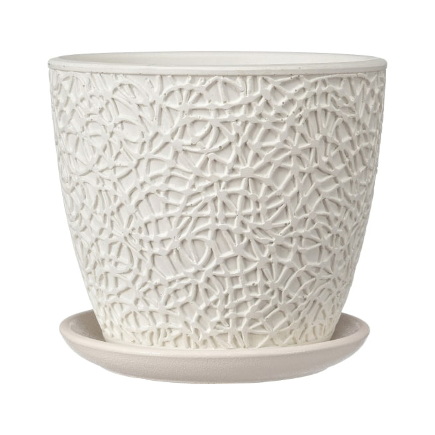 Кашпо бетон "Бутон" "Паутинка" 2,15л d верха 175мм h170мм с поддоном Белый №3КБ-Б3-178-03 *8