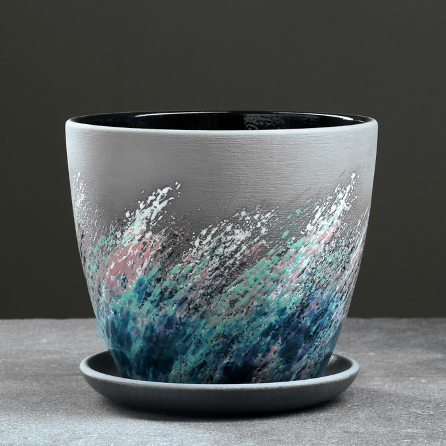 Кашпо керам. "Крокус" "Живопись" 2,3л d верха 177мм h155мм с поддоном черный №3 КС-К3-203-15 *8