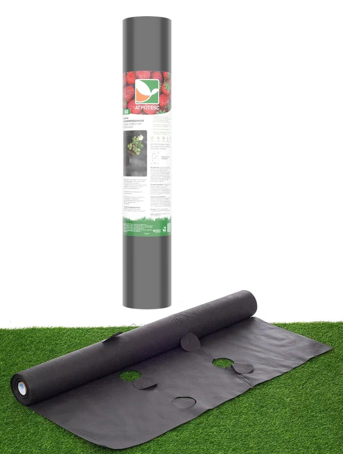 Укрывной материал Черный(мульча) ПЕРФОРированный пл.60г/кв.м, шир.1,06м,дл.10м в Рулоне "Агротекс"*1