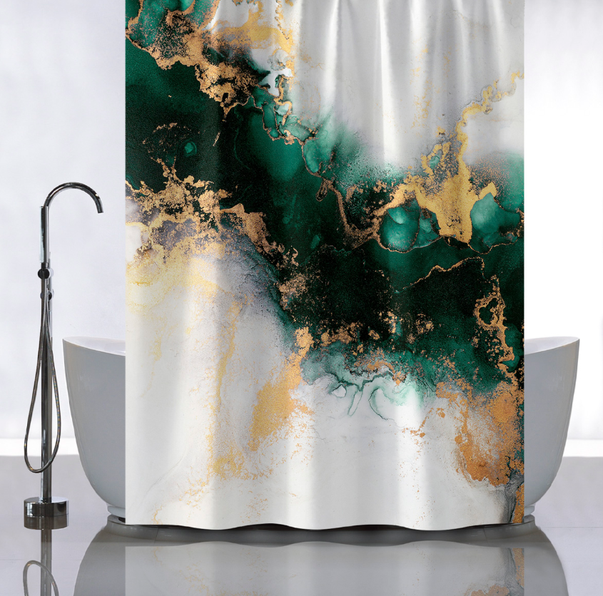 Штора  для ванной "Санакс" п/эстер 180*180см "Зеленый мрамор с золотом"  без колец 01-112 *1/24