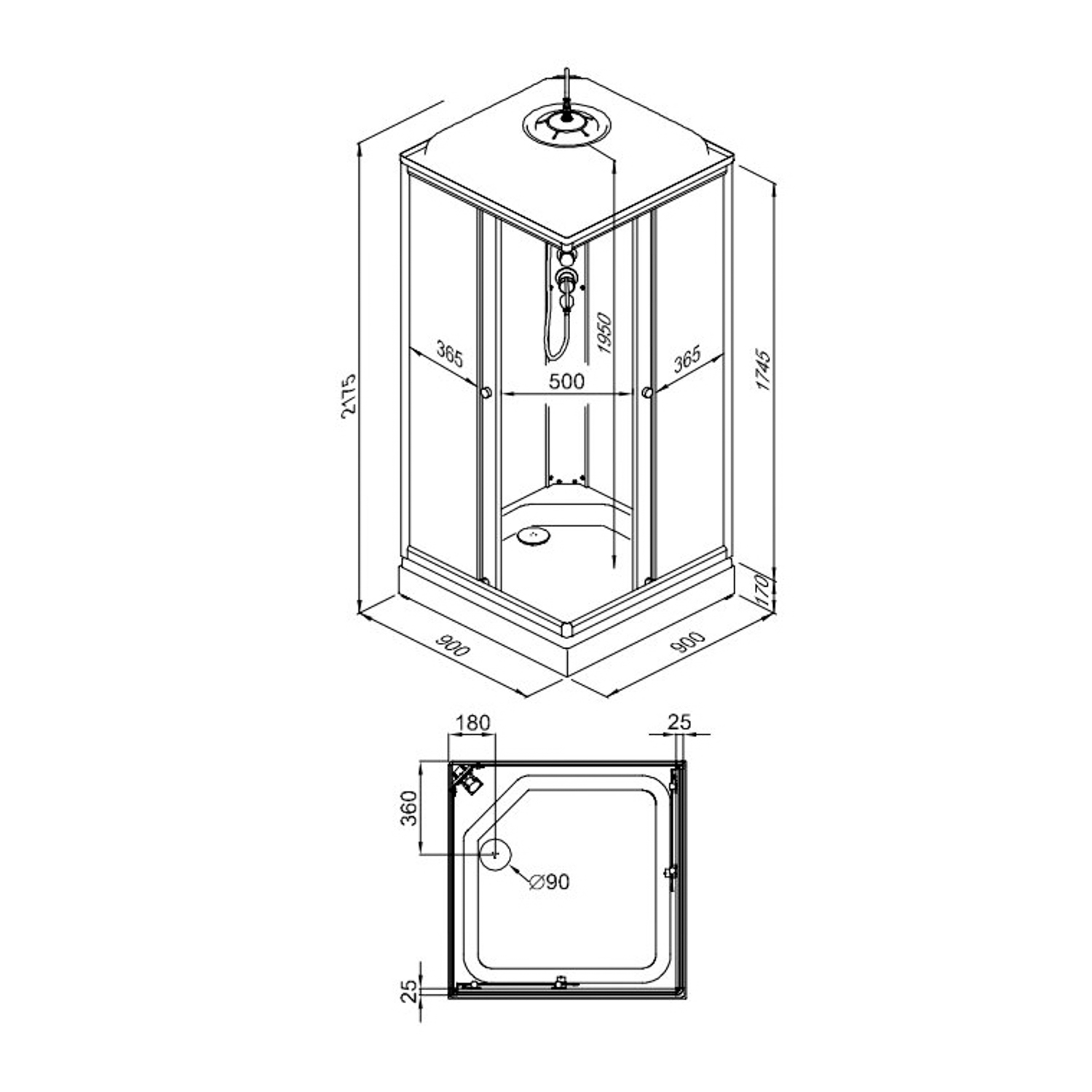 Кабина душевая 90*90 А Сатин-К ДН4 квадрат поддон низкий Белый (6 мест+сифон D90мм)