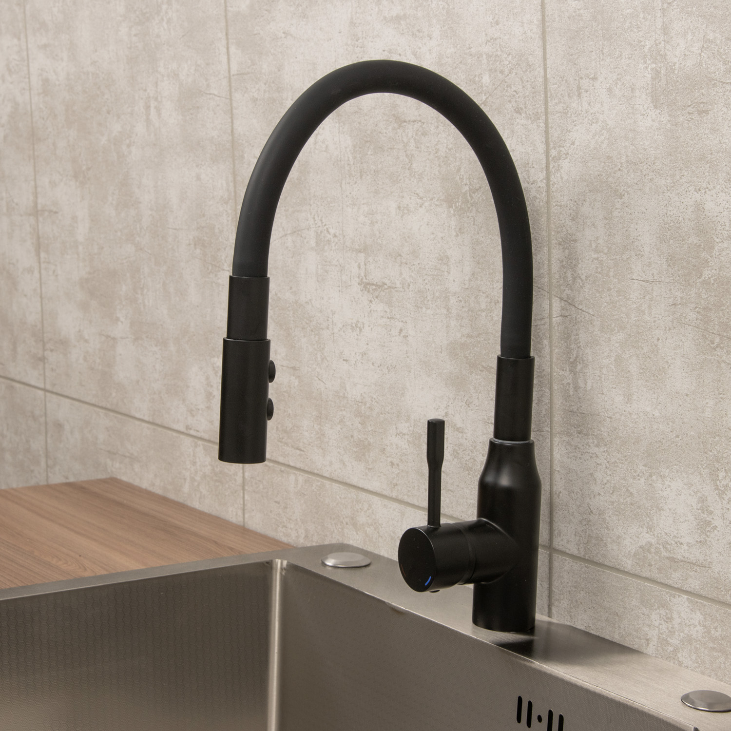 Смеситель для кухни Milardo Meal черный матовый, гибкий излив + душевая насадка M01BL2FM05 *1/10