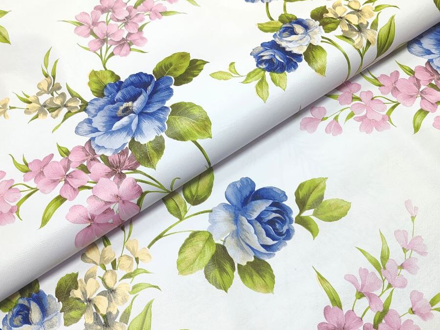 Клеенка на нетканой основе "Верона" "Цветы" роз.-гол. на белом шир.1,37м GW-21788 "Great Way" *30