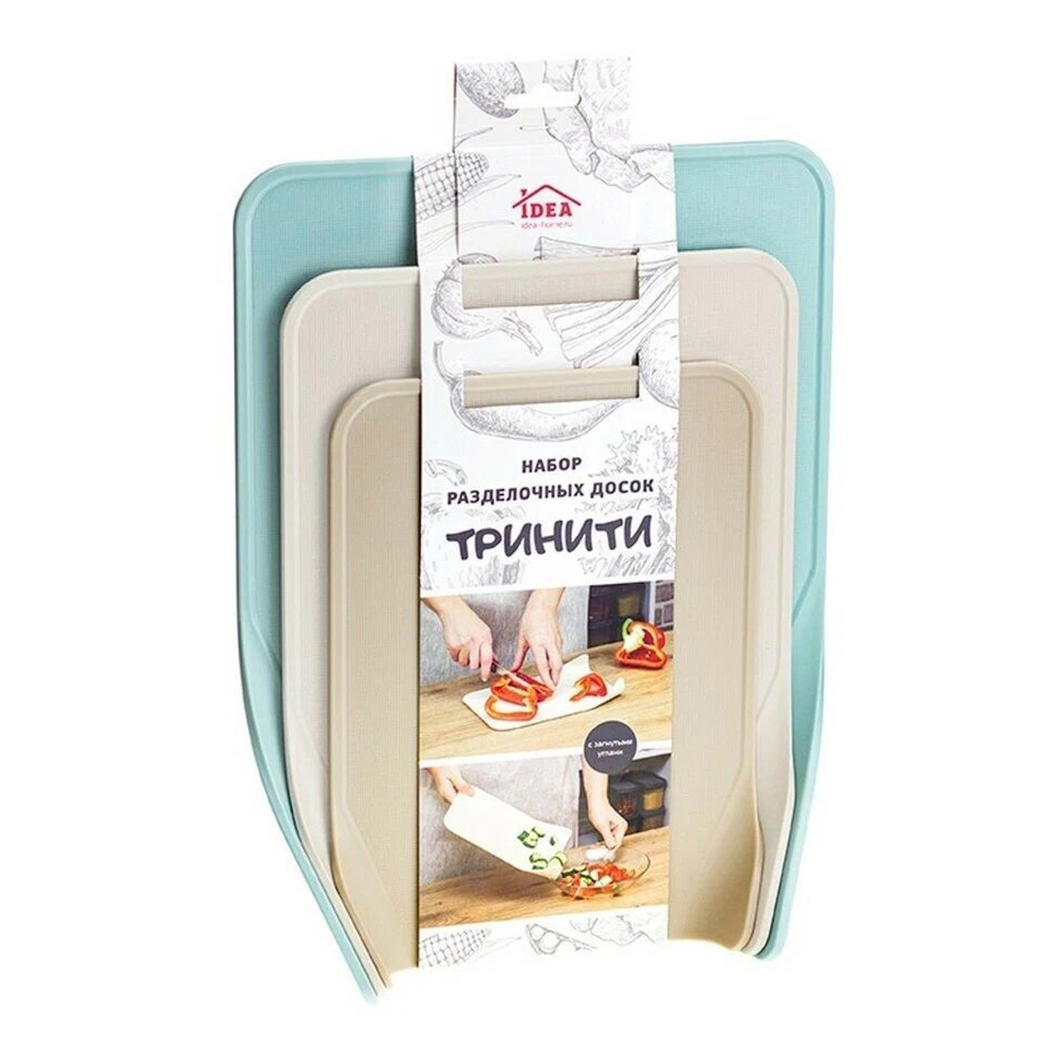 Доски разделочные пластм. Набор 3шт: 34х25,5, 29,5х22, 25х18,5мм "Тринити" М1581("М-П")*1/12