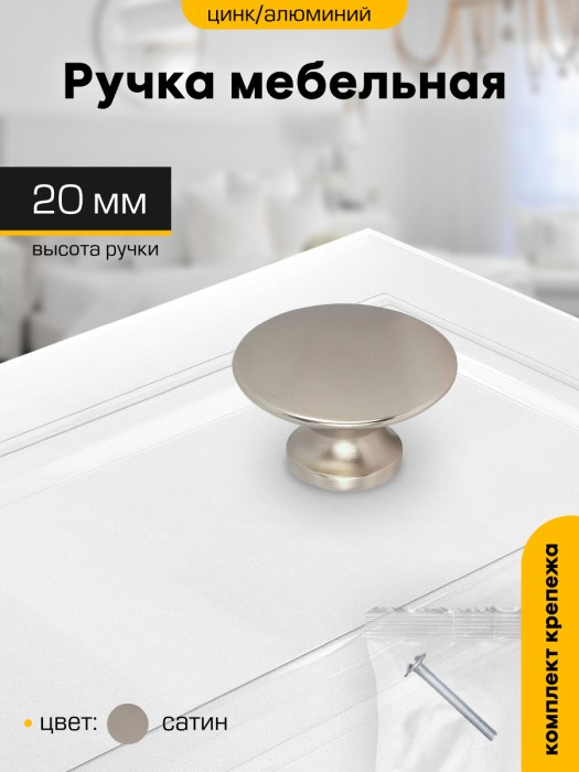 Ручка-кнопка САТИН 306С(индивидуальная упаковка) М1313ф d20мм SANBERG *10