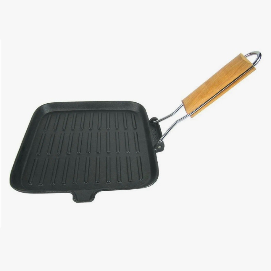 Сковорода чугунная квадр. 240х240мм "Гриль" Дерев. ручка XG61W "DECO" *1/12