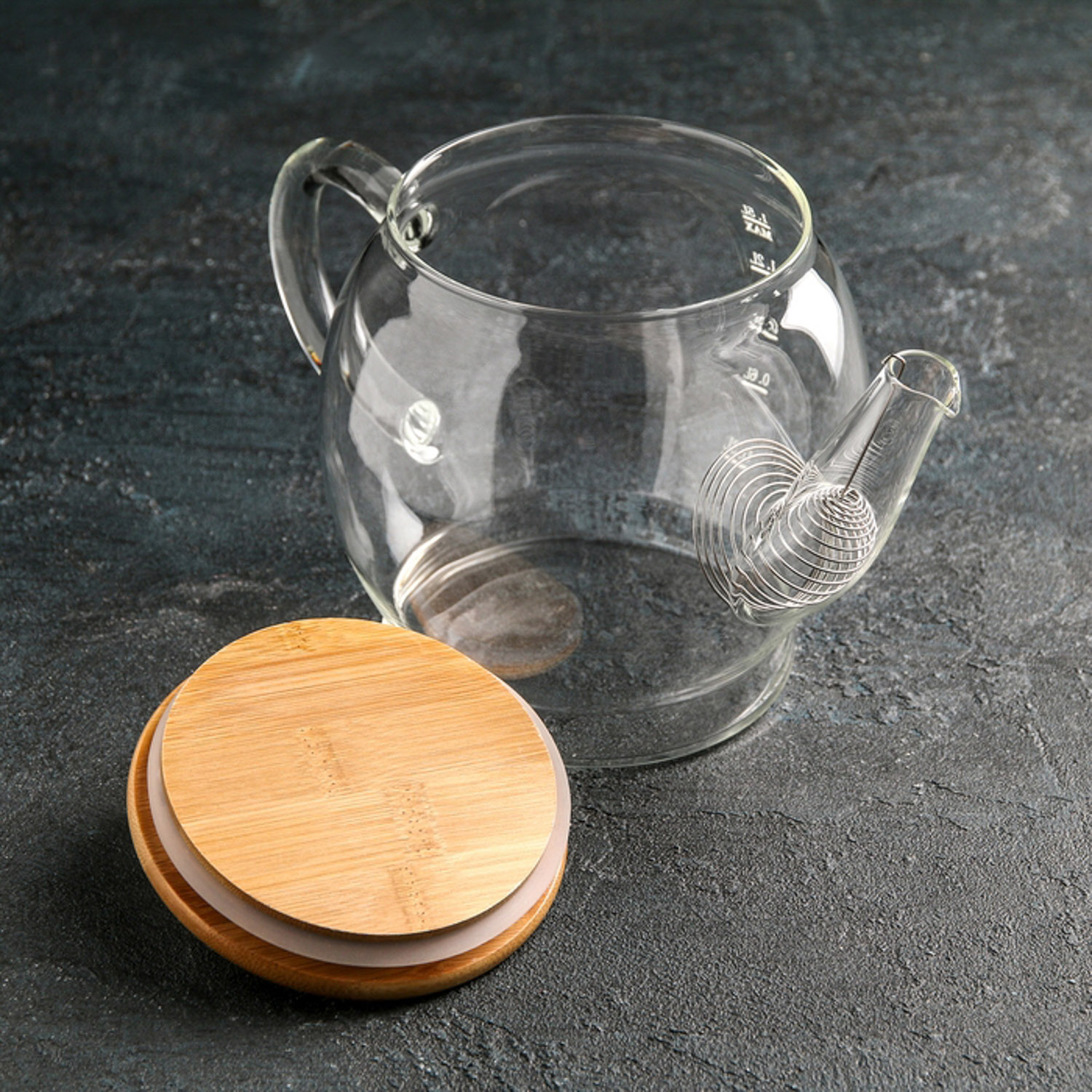 Чайник заварочн. стекло ECO 1500мл бамбук/нерж. крышка, фильтр-пружина (F01-06) *1/36