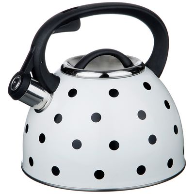 Чайник нерж. 2,5л со свистком Белый "Горошек", индукц. дно (907-070)
