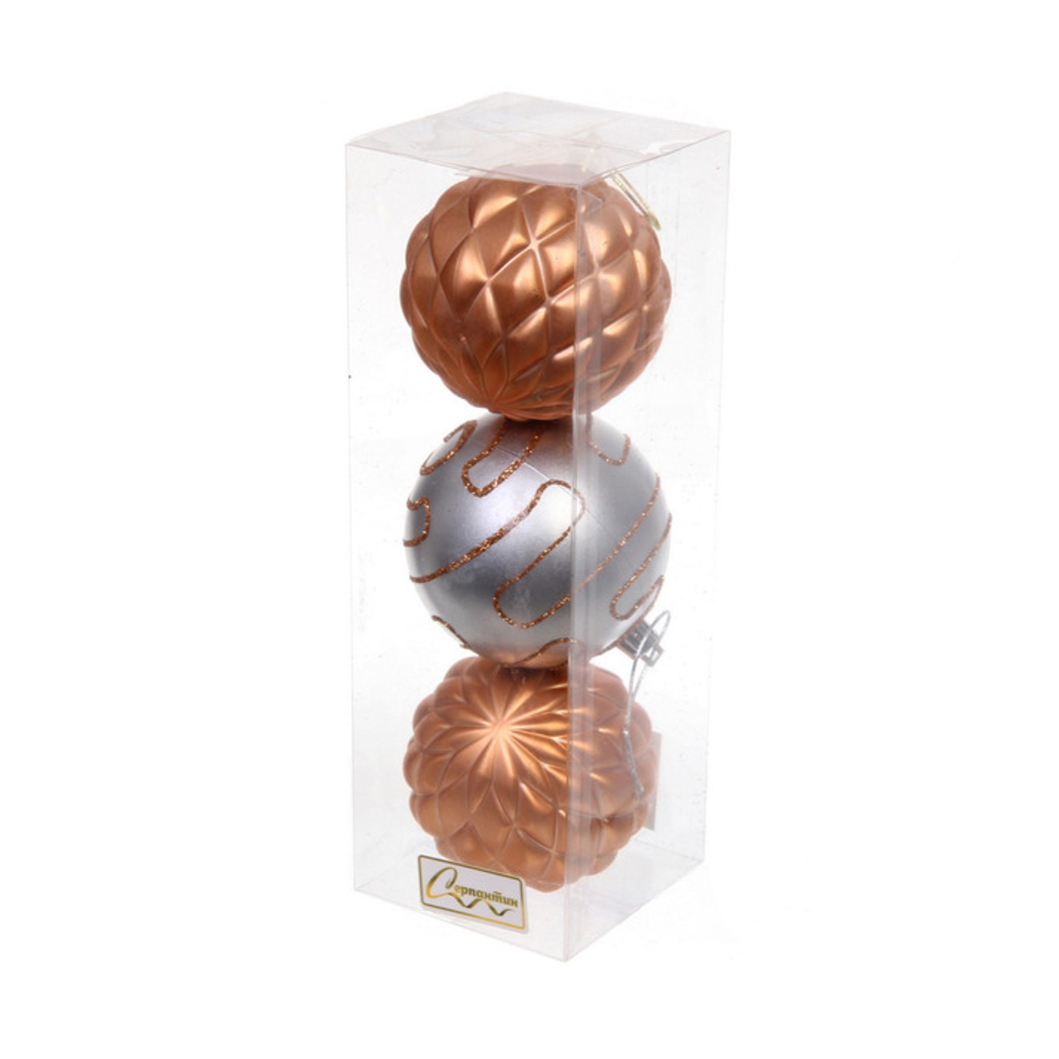 Новогодние шары 7см (набор 3шт) "Сказочная мечта", серебро/шампань