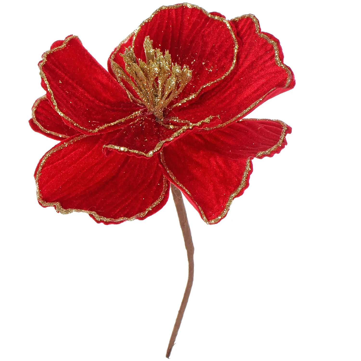 Украшение новогоднее "Пуансеттия - Изящная" 16 см, Красный/Золото