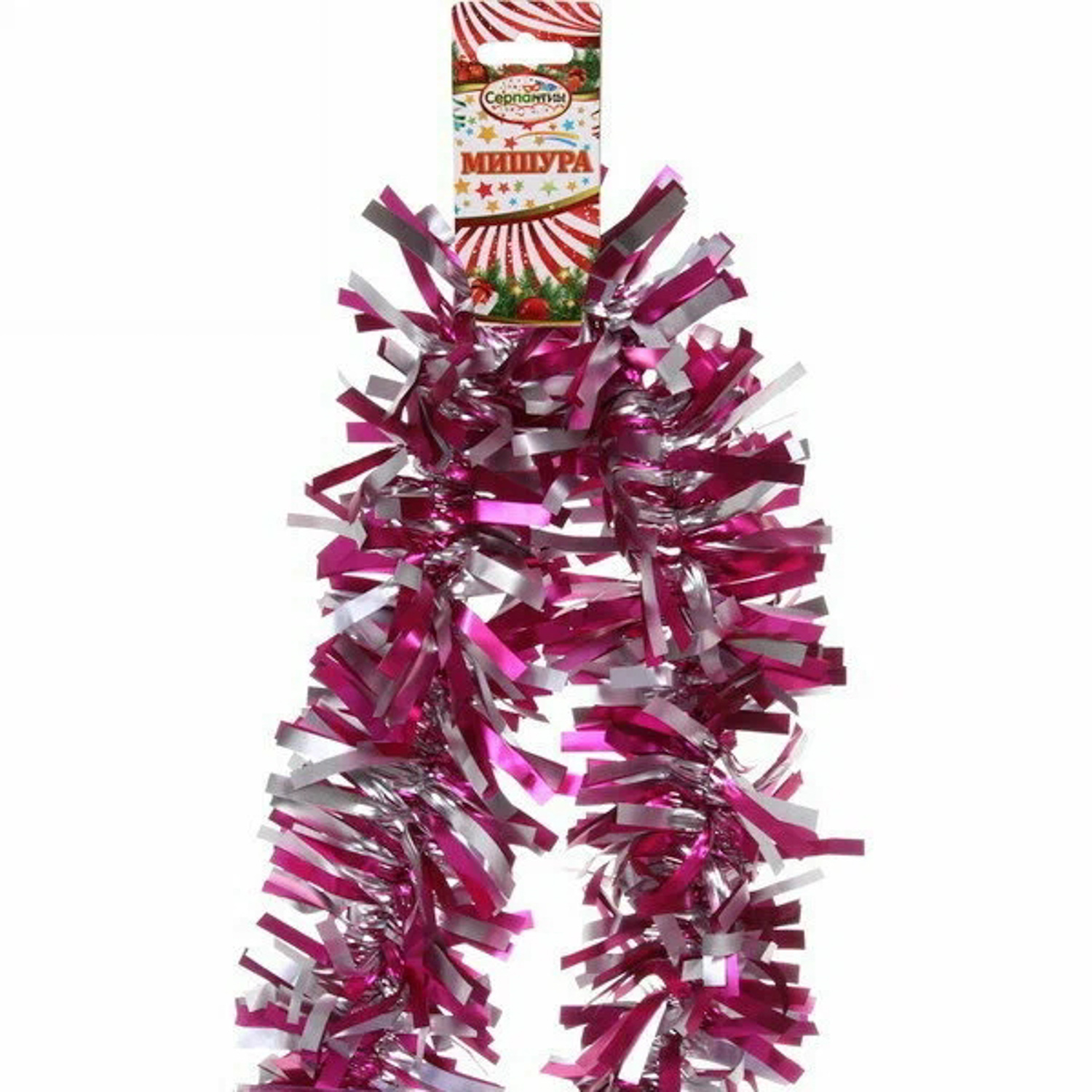 Мишура Серпантин «Неоновые краски», 200х9 см, фуксия с серебром