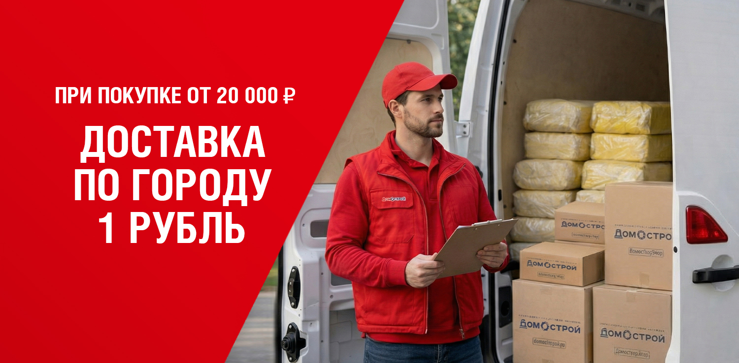При совершении покупок на сумму от 20 000 руб. в розничном магазине ДомоСтрой и на сайте ishim.domostroy.shop доставка по городу всего за 1 рубль! Вы можете выбрать подходящую дату, доступную при покупке товаров, и в течение назначенного дня мы привезем товар.