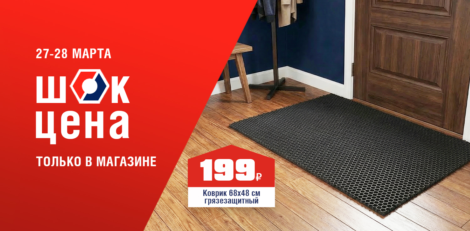 С первыми тёплыми днями в дом приходит не только весна, но и лужи, слякоть и мокрые следы на полу. Встретьте сезон во всеоружии! Грязезащитный коврик для входной зоны надежно задержит уличную влагу и песок, оставляя ваш пол идеально чистым. 27 и 28 марта в розничных магазинах ДомоСтрой не пропустите ШОК-цену: