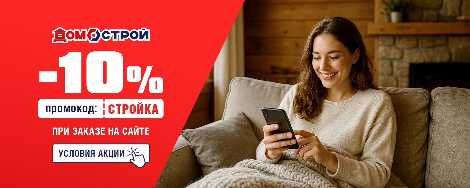 Успейте воспользоваться скидкой 10% по промокоду СТРОЙКА. Скидку 10% можно получить при заказе на сайте, для этого: